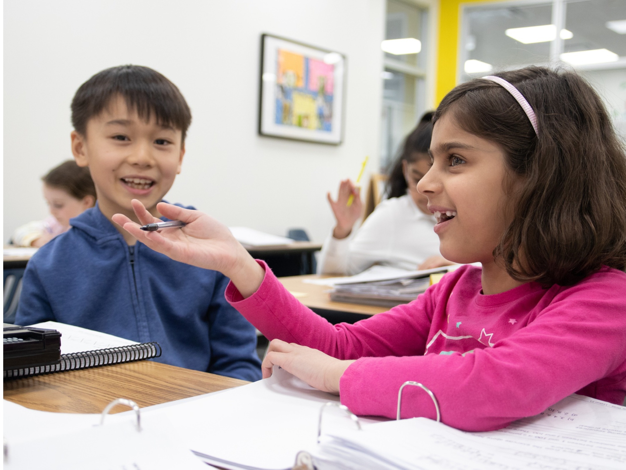 The Grade 2 curriculum introduces many mathematical concepts, and the weekly 1.5-hour class is packed with new learning each week. By the end of Grade 2, students can add, multiply, divide, as well as work with integers up to 2-digit by 1-digit calculations. Through drills, students work cooperatively to reach a class goal. They continue to master regrouping numbers to multiples of tens and hundreds, are introduced to primes, composites, special numbers, and they learn to list factors. Later in the year, the grade 2 students locate rationals on a number line, add and subtract positive and negative rationals, and gain a deep understanding of how numbers relate to each other. In addition our grade 2 students learn to convert numbers from base 10 to other bases with a focus on learning place value. Grade 2 students write tests throughout the year, as well as the Spirit of Math International Contest during class time, with an exam at the end of the year. The overall curriculum is fast-paced and engaging to our Grade 2 students.